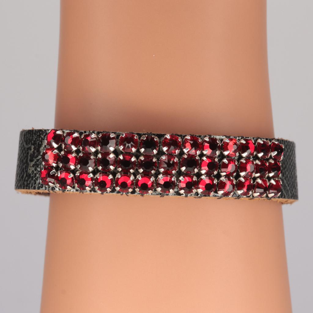Lederarmband mit 39 Swarovski® Rose Montees 4mm, light siam, Verschluss 925er Silber
