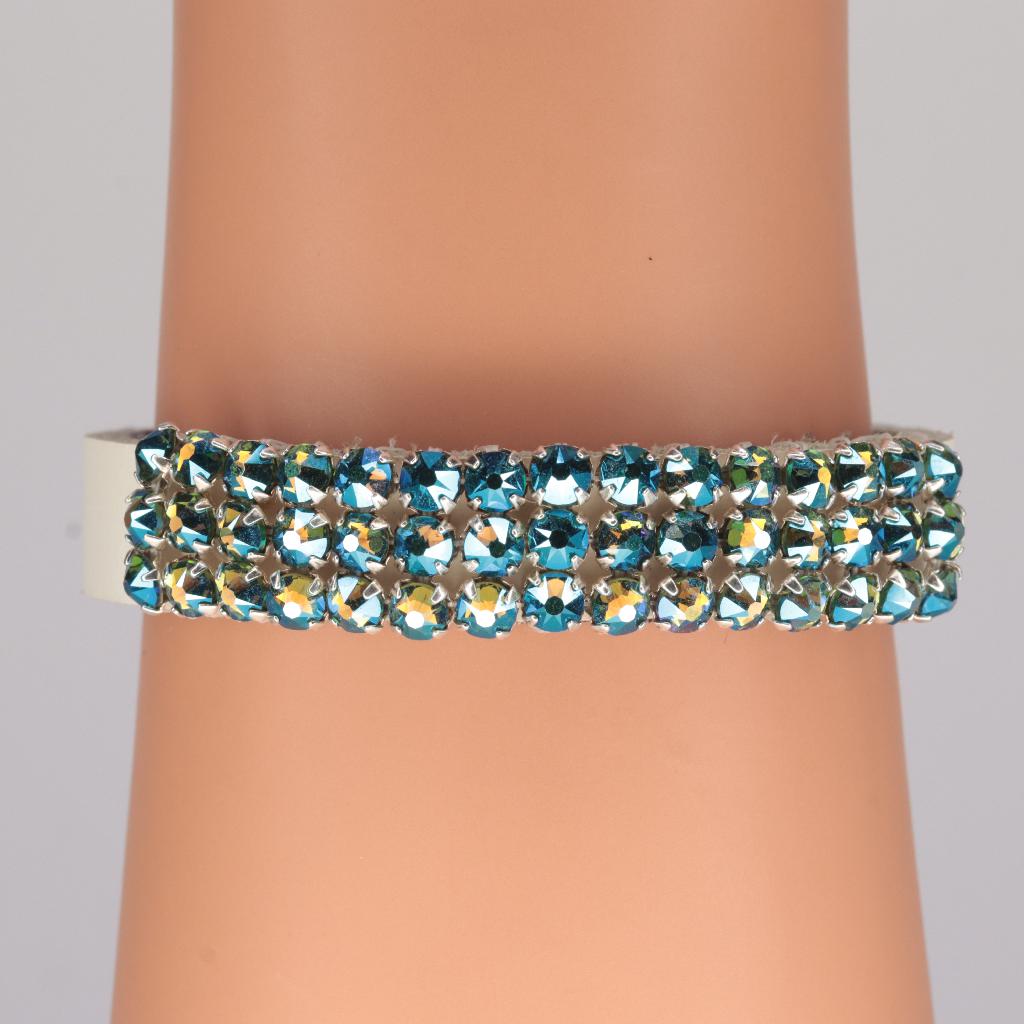 Lederarmband mit 45 Swarovski® Rose Montees 4mm, erinite shimmer, Verschluss 925er Silber