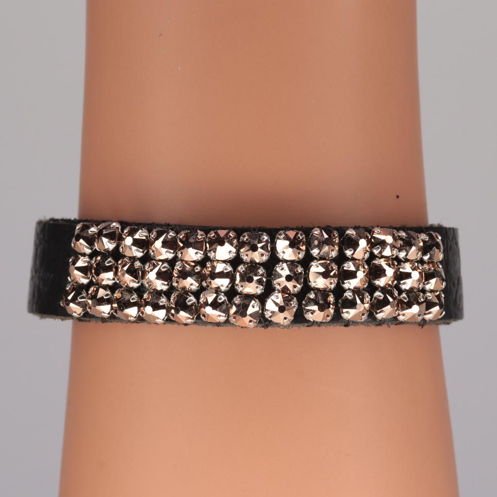 Lederarmband mit 39 Swarovski® Rose Montees 4mm, crystal rose gold, Verschluss 925er Silber